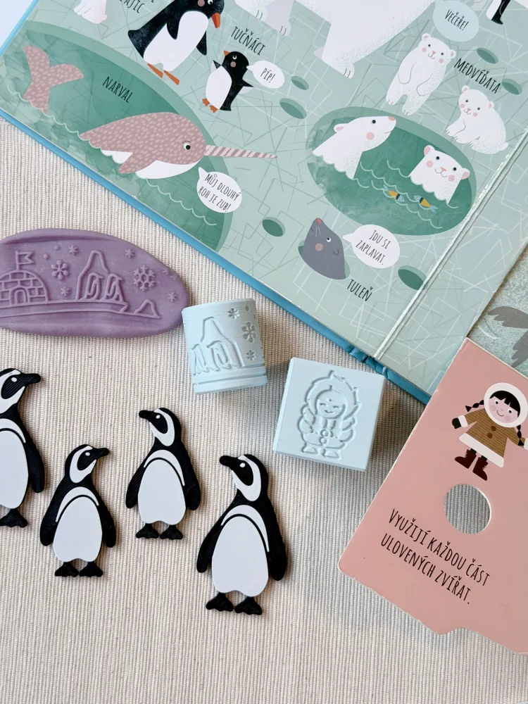 Táto jedinečná kocka s valčekom zavedie deti na dobrodružnú cestu do polárnej oblasti. Každá strana kocky ponúka nový motív na objavovanie a čaká, kým si ho deti otlačia do modelíny. Vo vnútri kocky je navyše ukrytý špeciálny valček s detailným vzorom krajiny. Hra s otláčacou kockou rozvíja detskú kreativitu a jemnú motoriku a zároveň prináša chvíle radosti nielen deťom, ale aj ich rodičom.